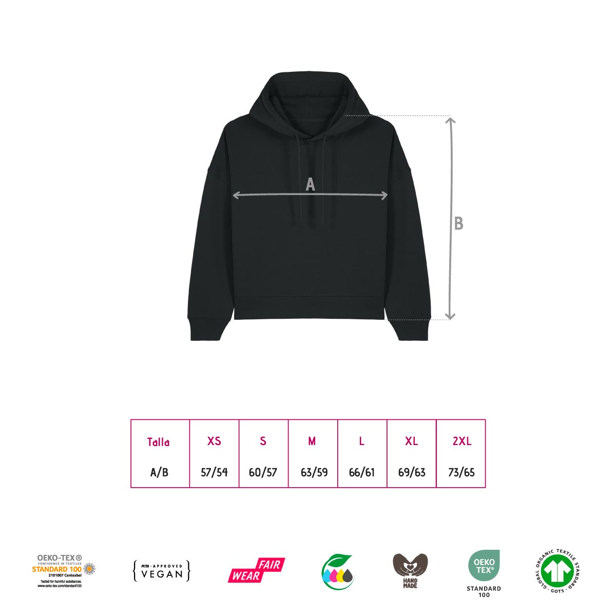 • Tallas: XS, S, M, L, XL, 2XL (medidas explicadas en una imagen)